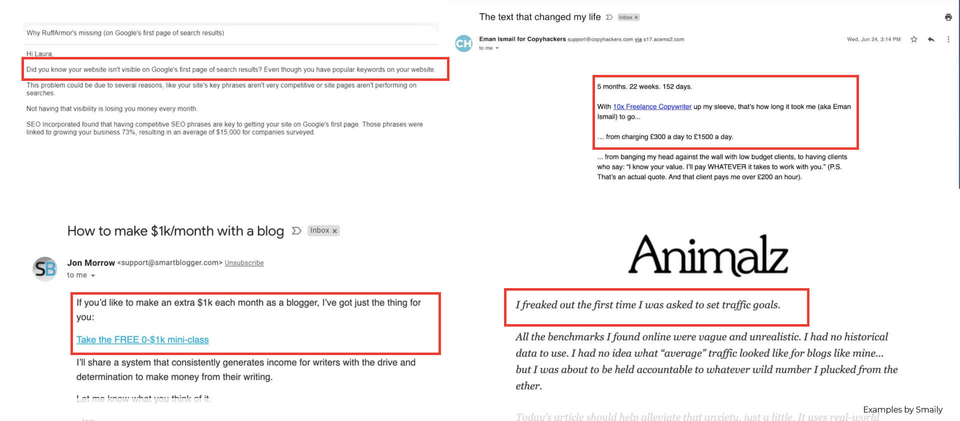Maintenant, comme promis, voici quelques exemples fantastiques de la manière dont vous pouvez mettre en œuvre les conseils et stratégies mentionnés ci-dessus pour créer une campagne d’e-mails à froid gagnante.